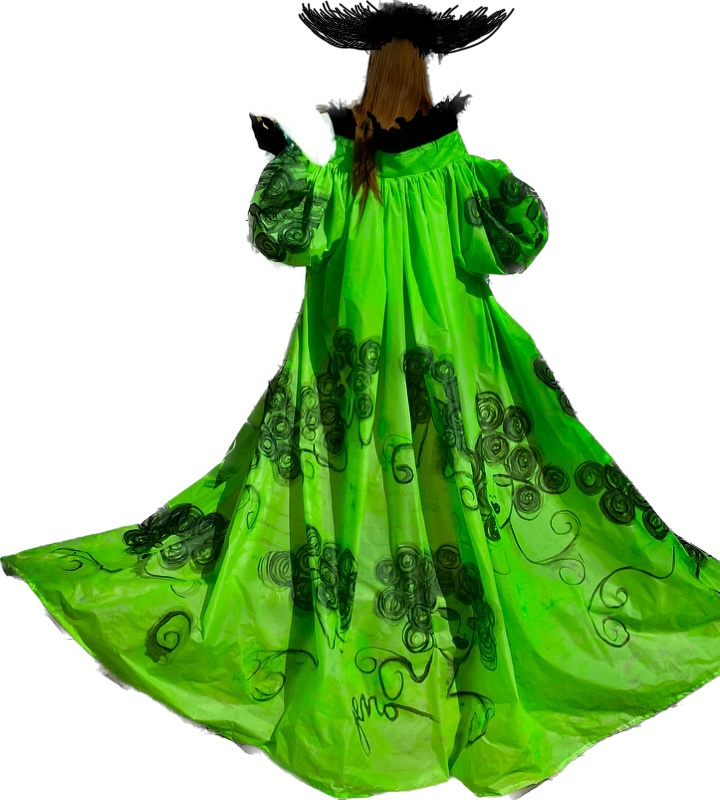 Custom made to order, hand painted by Gerro dramatic opera coat, Dupioni silk, one size fits most, 60' length, puffy sleeves, off the shpulder feathered tie closure, unlined, dry clean only. 2-4 weeks delivery. Colors available: Green, Pink, Purple, Red, White.