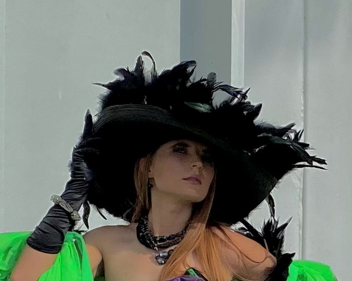 Dramatic Haute Couture Hat, 30" diameter WOW, adorned with 6" black feathers. It's a wow hat. 2-4 weeks delivery.