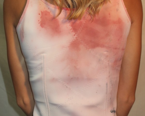 One of a kind hand painted with ebroydered roses sewn on, reversable, boning, adjustable sized Sm to L, spandex, hand wash or machine wash and dry.