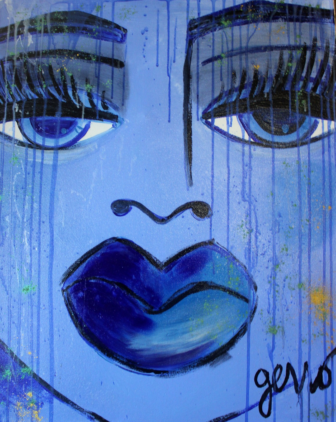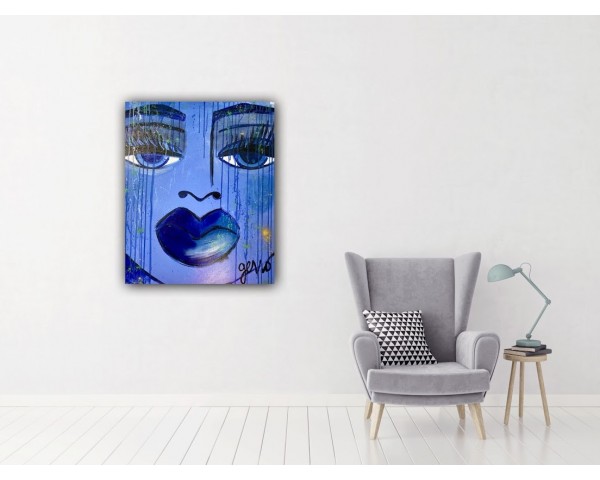 Original acrylic painting 24" x 30"x 1" Blue Tears inspired by mood and feelings of a blue love.